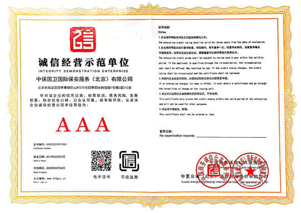 中保國衛國際保安服務(北京)有限公司,屬中保國衛集團旗下子公司。能全方位的為大型客戶提供優質的安保、押運服務,是集人防和技防于一體的新型正規化綜合安保押運服務企業,提供人防、物防、技防、聯網報*、非武裝押運等安防相關的一站式服務。